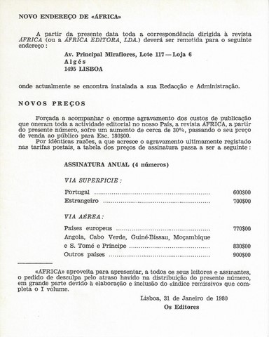 Vol. II, n° 8, ano II, Lisboa - Abril-Jun./1980